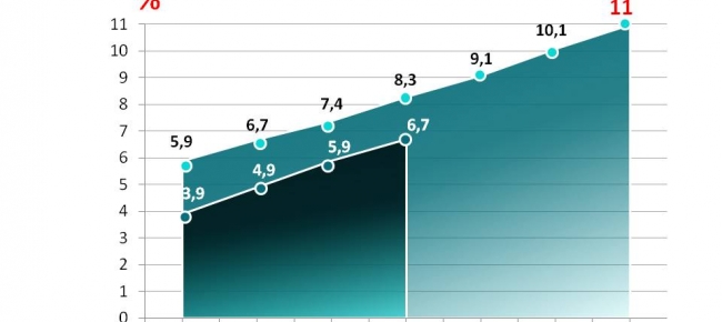 - у споживанні електроенергії - з 7,4 % до 8,6 %;