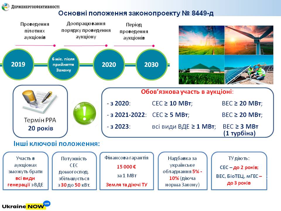Голова також додав: «Крім цього, у 2019 р. у Києві разом з IRENA плануємо організувати конференцію, під час якої маємо намір проаналізувати розроблену модель переходу на аукціони в Україні та удосконалити її».