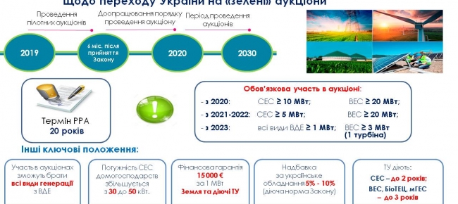 Держава, у свою чергу, дасть можливість інвестору продавати «чисту» електроенергію за аукціонною ціно впродовж 20 років.