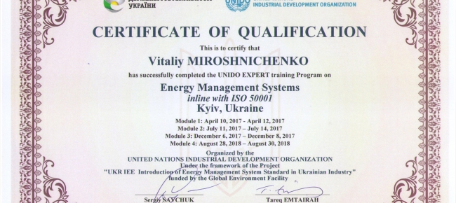 Навчання проводиться у рамках Проекту ЮНІДО UKRIEE (http://www.ukriee.org.ua) за підтримки Держенергоефективності.