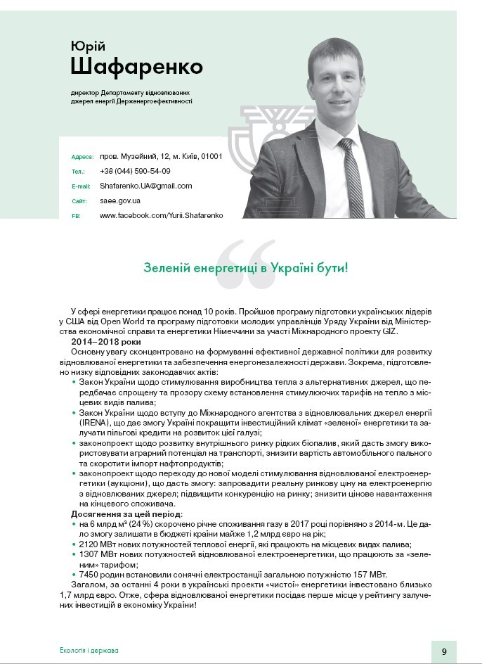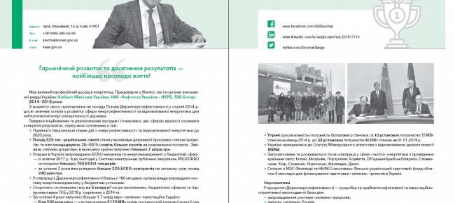 20 02 2019Так прокоментував Голова Держенергоефективності Сергій Савчук спецвипуск "ЕКО-лідери" - унікальну колекцію візиток стейкхолдерів «зелених» змін.