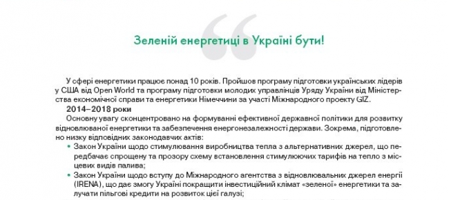 Спецвипуск, підготовлений журналом «Eкологія підприємства», об’єднав експертів, які роблять внесок у розвиток енергоефективної та енергонезалежної країни. Це представники державних органів влади, бізнесу, профільних асоціацій, міжнародних організацій.