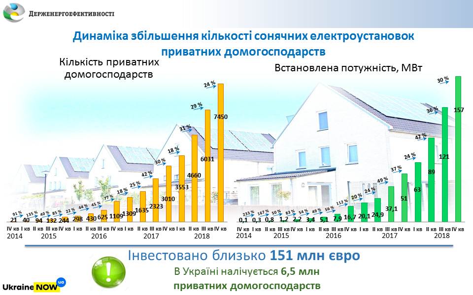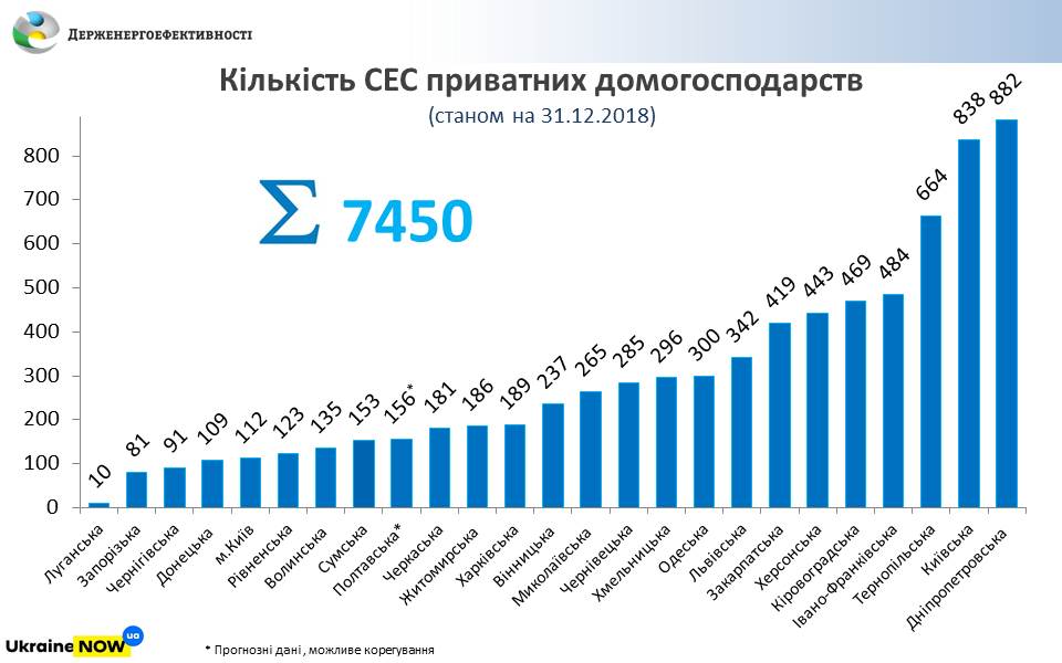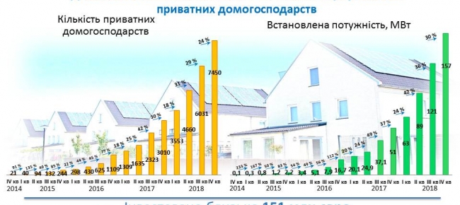 «Так, якщо у 2014 р. більше 20 родин використовували сонячні електростанції, то станом на кінець 2018 р. вже налічується біля 7,5 тис. таких домогосподарств. З них 4,5 тис. сімей перейшли на сонячні панелі у 2018 році», - повідомив С.Савчук.