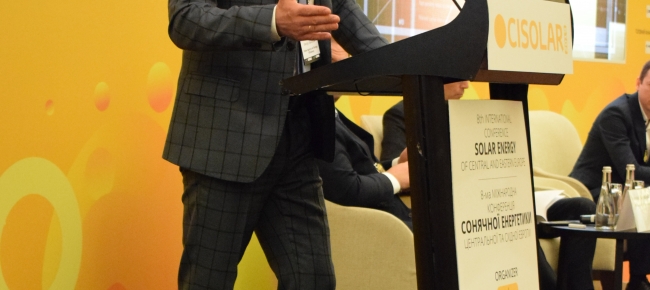 17 04 2019На 8-ій Міжнародній конференції та виставці сонячної енергетики в Центральній та Східній Європі «CISOLAR 2019» Голова Держенергоефективності Сергій Савчук окреслив досягнення та перспективи розвитку «зеленої» енергетики, зокрема сонячної енергетики.