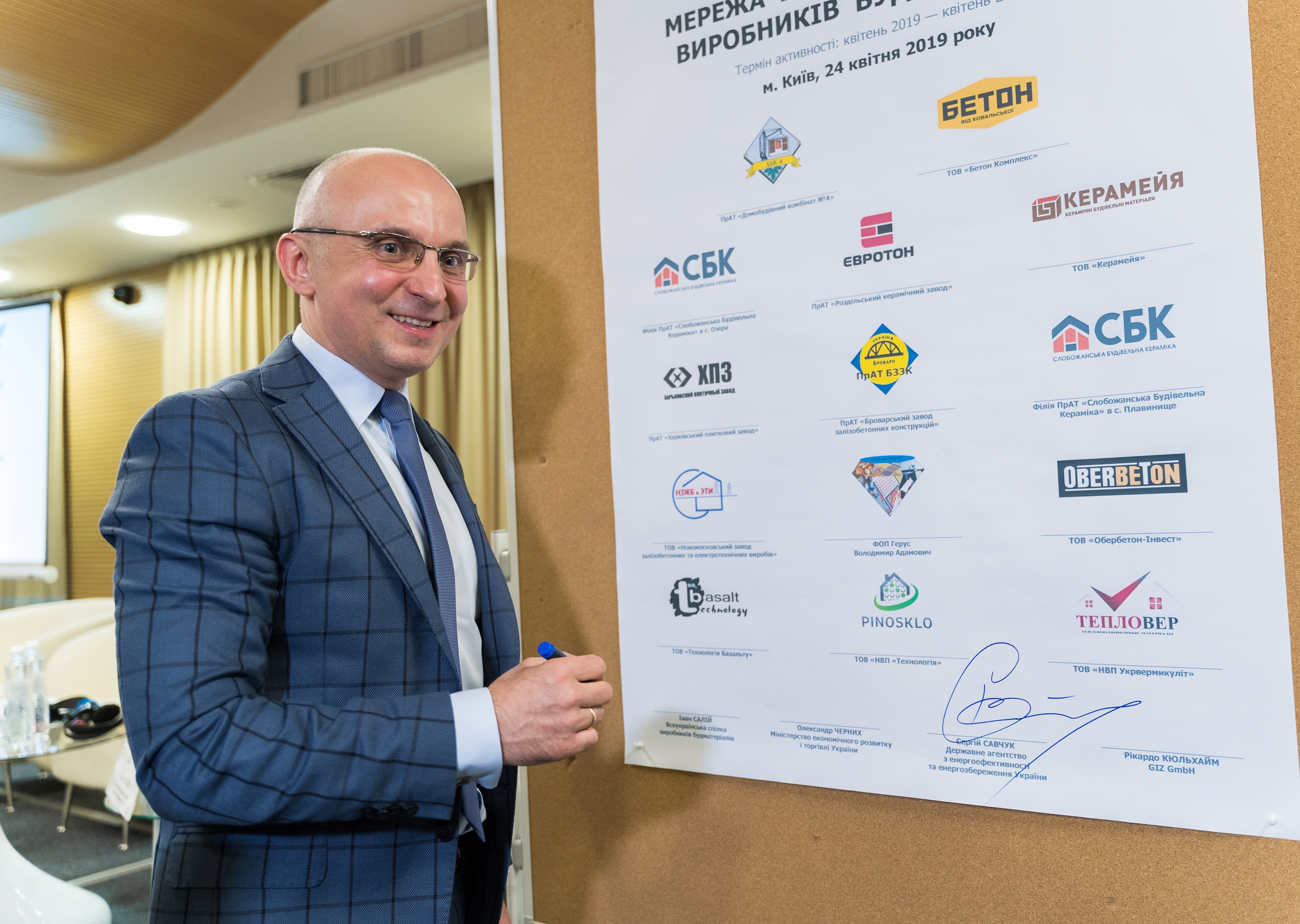 25 04 2019Голова Держенергоефективності Сергій Савчук взяв участь у запуску Мережі енергоефективності виробників будматеріалів за підтримки Уряду Німеччини в рамках Проекту GIZ «Консультування підприємств щодо енергоефективності“.