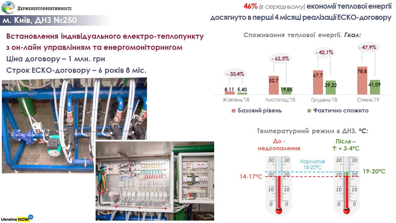 Так, наприклад, у столичному дитячому садку № 250 ЕСКО-інвестор встановив індивідуальний електро-теплопункт.