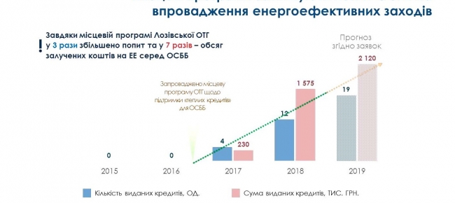 Якщо у 2017 р. ОСББ у Лозівській ОТГ одержали 230 тис. грн «теплих кредитів», то у 2018 р. вже у 7 разів більше - 1,5 млн гривень.