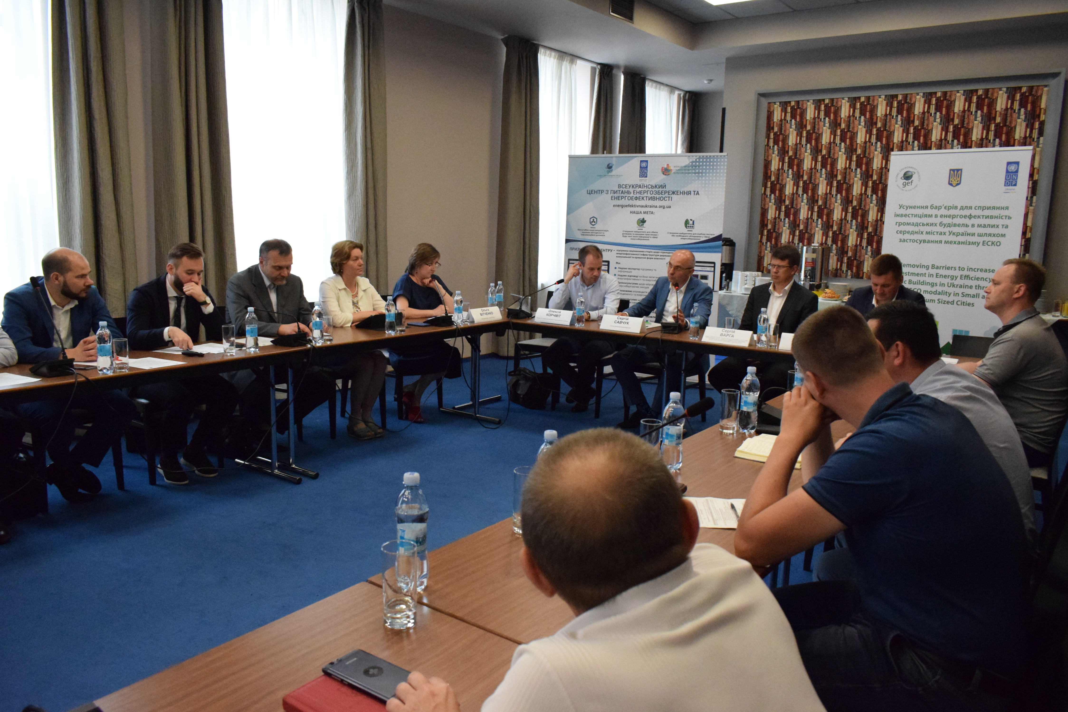 06 06 2019Держенергоефективності разом із Проектом ПРООН «Усунення бар’єрів для залучення інвестицій у підвищення енергоефективності громадських будівель у малих і середніх містах України на основі моделі ЕСКО» під час круглого столу презентували роботу над новою моделлю енергосервісу – «ЕСКО-Енергоменеджмент».