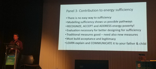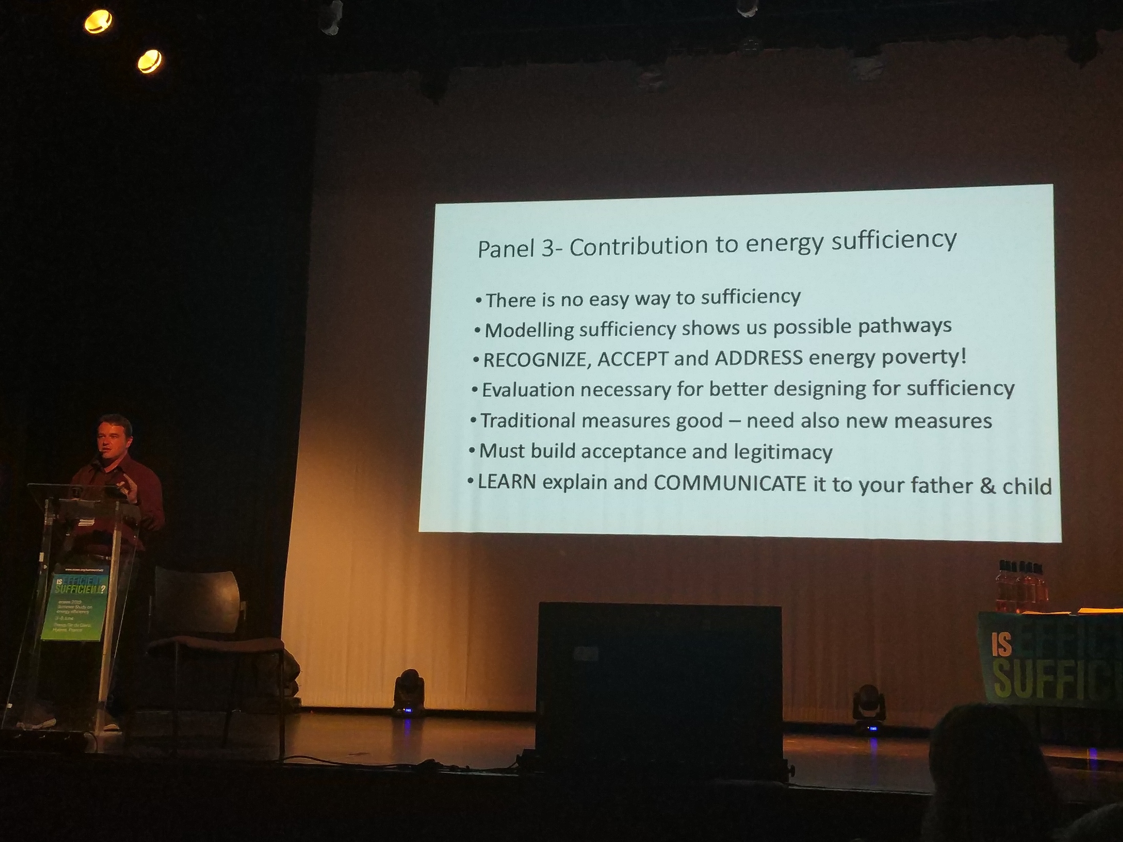 У цьому контексті особливу увагу учасників було сфокусовано на можливостях переходу від енергоефективності до так званої «energy sufficiency». Це потребує не лише технологічних інновацій, використання відновлюваних джерел енергії, а й зміни поведінки та культури суспільства для достатнього задоволення своїх енергетичних потреб.