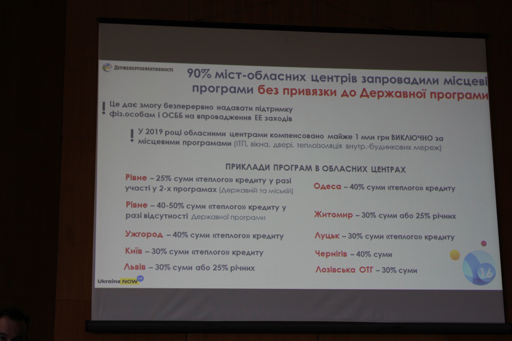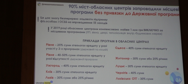 «Приємно вражає активність влади Сумщини щодо співфінансування 15% ставки за «теплими кредитами» для ОСББ, починаючи ще із 2016 року. У 2018 р. регіональну програму було поширено і для фізичних осіб. На її реалізацію у п.р. виділено 850 тис. грн, з яких вже відшкодовано понад 130 тис. гривень», - прокоментував Роман Палагусинець, начальник Управління реформування сфери енергоефективності та енергозбереження Держенергоефективності.