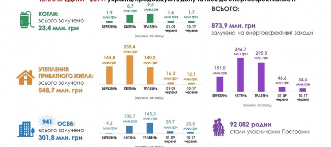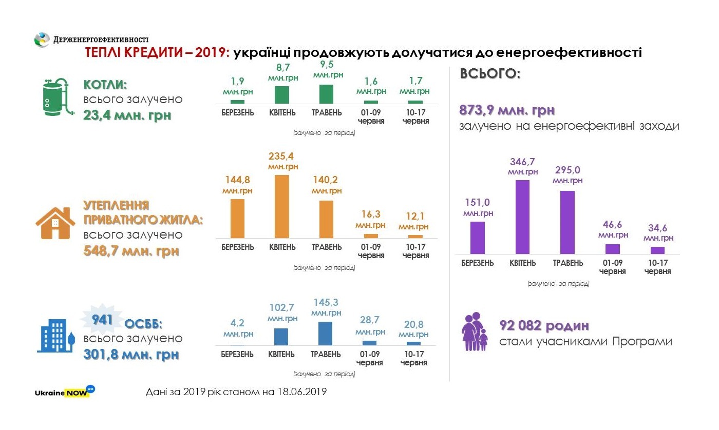 19 06 2019Попит сімей на Урядову програму з енергоефективності не вщухає. За останній тиждень, із 10 по 16 червня ц.р., банками видано ще 35 млн грн населенню та ОСББ на утеплення осель.