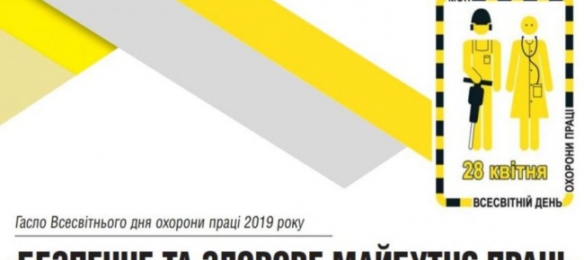 03 04 2019У Всесвітній день охорони праці, 28 квітня, в Україні відзначають День охорони праці. Цього року Україна долучилася до ініціативи Міжнародної організації праці провести заходи до Всесвітнього дня охорони праці під гаслом «Безпечне та здорове майбутнє праці».