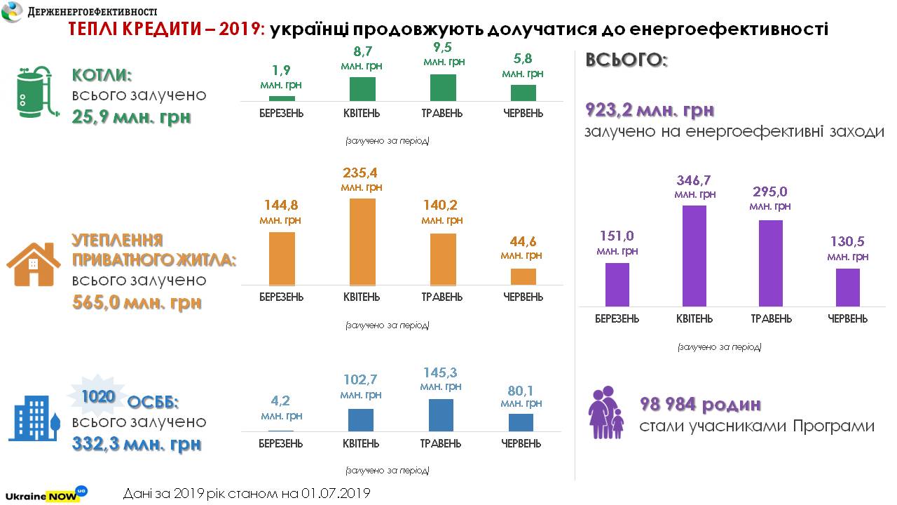 02 07 2019У 2019 р. близько 100 тис. сімей вже залучили понад 920 млн грн «теплих кредитів», зокрема: