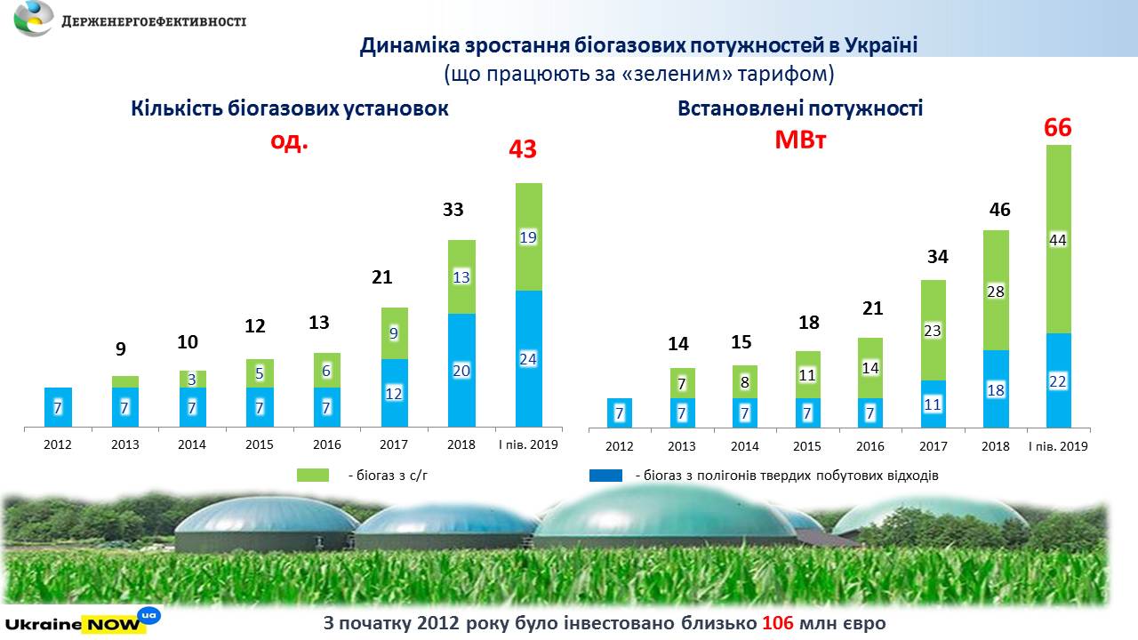 Для порівняння ще у 2012 р. було лише 7 МВт таких об’єктів на біогазі.