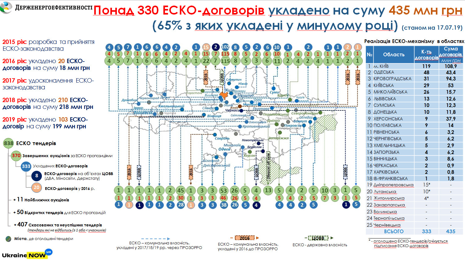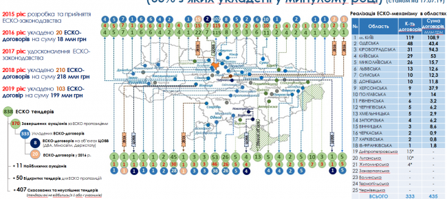 «Полтавщина знаходиться серед першопрохідців у питанні енергосервісу. Так, ще у 2016 р. було укладено 2 ЕСКОдоговори на модернізацію котельного обладнання у навчальних закладах с. Попівка та С. Соснівка Миргородського р-н. За результатами зазанчених контрактів середня економія складає 70%», – повідомив про успішність ЕСКО-механізму О. Корчміт.