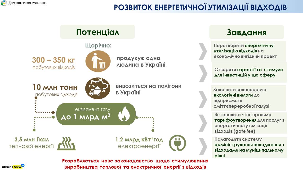 Тому Держенергоефективності вже розроблено не лише концепцію, а й цілу низку законопроектів для стимулювання енергетичної утилізації твердих побутових відходів.
