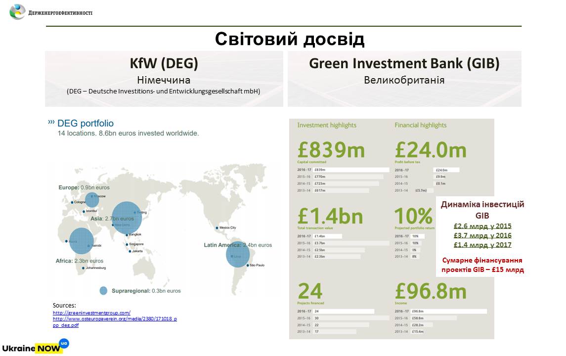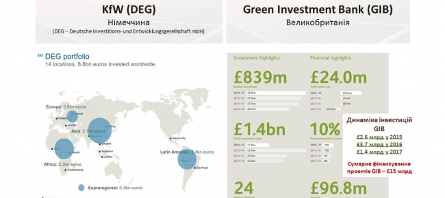 «Наша мета – заснувати в Україні надійний фінансовий інструмент співфінансування проектів за зразком «Green Investment Group» у Великобританії (http://greeninvestmentgroup.com), «DEG» (https://www.deginvest.de) у Німеччині», - повідомив Сергій Савчук.