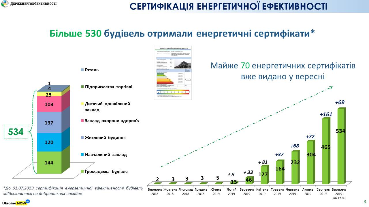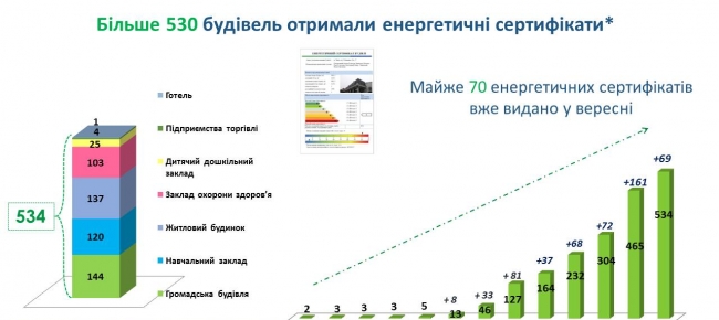 Загалом, станом на 12.09.2019 нараховується вже більше 530 будівель, які пройшли сертифікацію, зокрема: