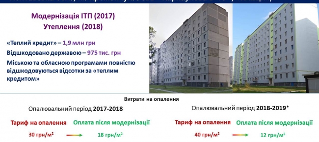 «Таким чином, щонайменше 70% «теплого кредиту» бере на себе Уряд та місцева влада, знімаючи фінансове навантаження із ОСББ. Це дуже вигідні умови, щоб комплексно утеплити багатоповерхівки та зменшити комунальні платіжки удвічі й більше», - пояснив С.Савчук.