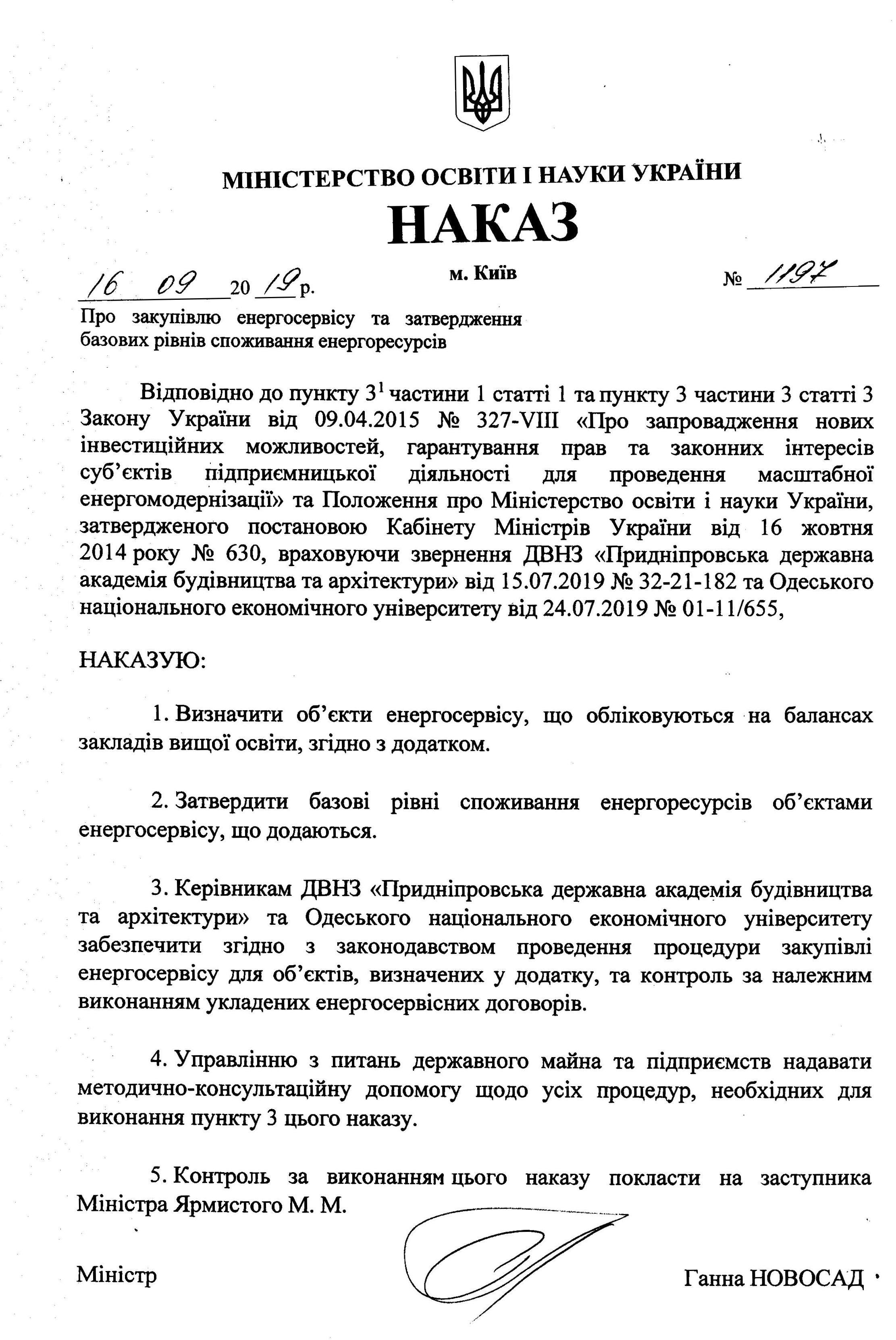 22 09 2019Міносвіти дає старт енергосервісу для ще 2 закладів вищої освіти.