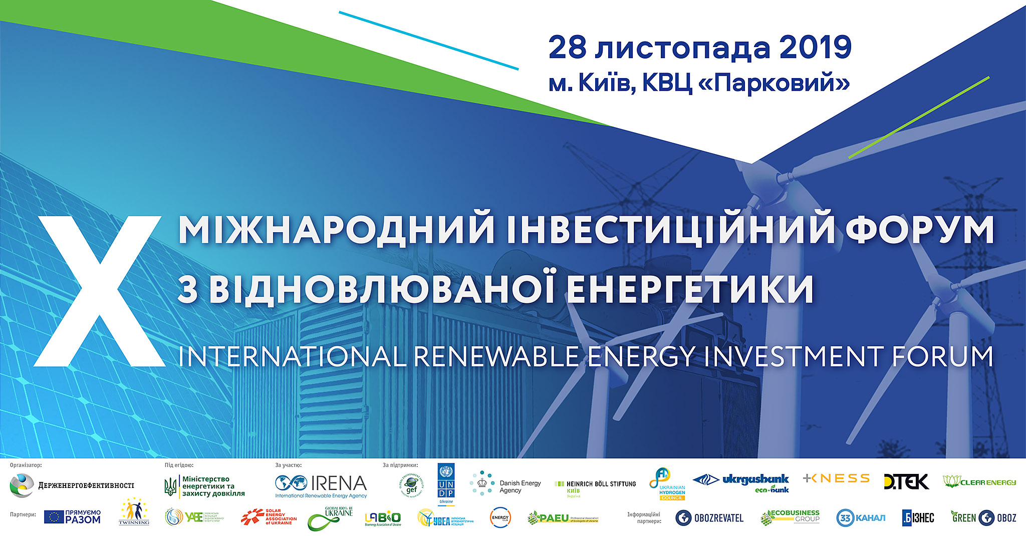 26 11 201928 листопада о 09:30 у м. Києві в КВЦ «Парковий» Держенергоефективності під егідою Мінекоенерго за участю IRENA розпочинає широкомасштабний X Міжнародний інвестиційний форум з відновлюваної енергетики.