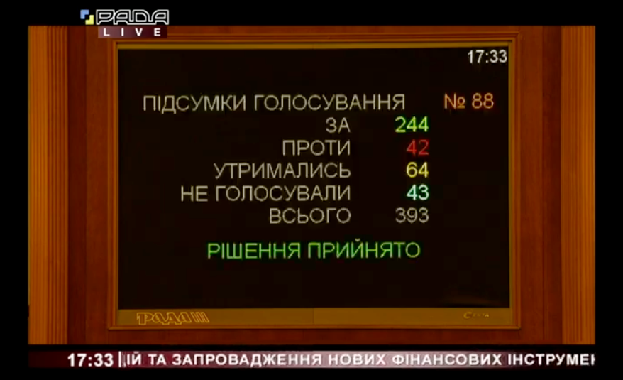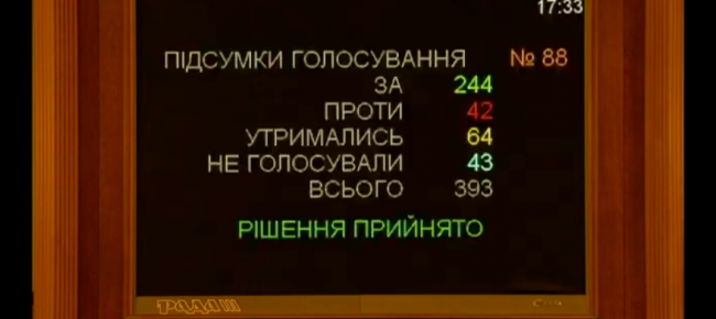 За це рішення проголосували 244 народних депутати.