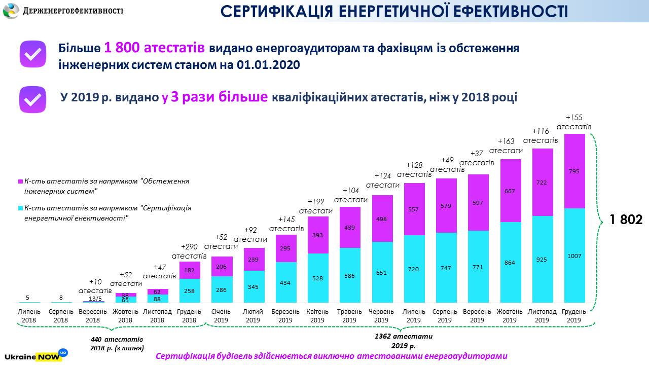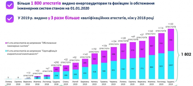 03 01 2020Станом на 1 січня 2020 р. в Україні видано понад 1800 атестатів енергоаудиторам, а саме: