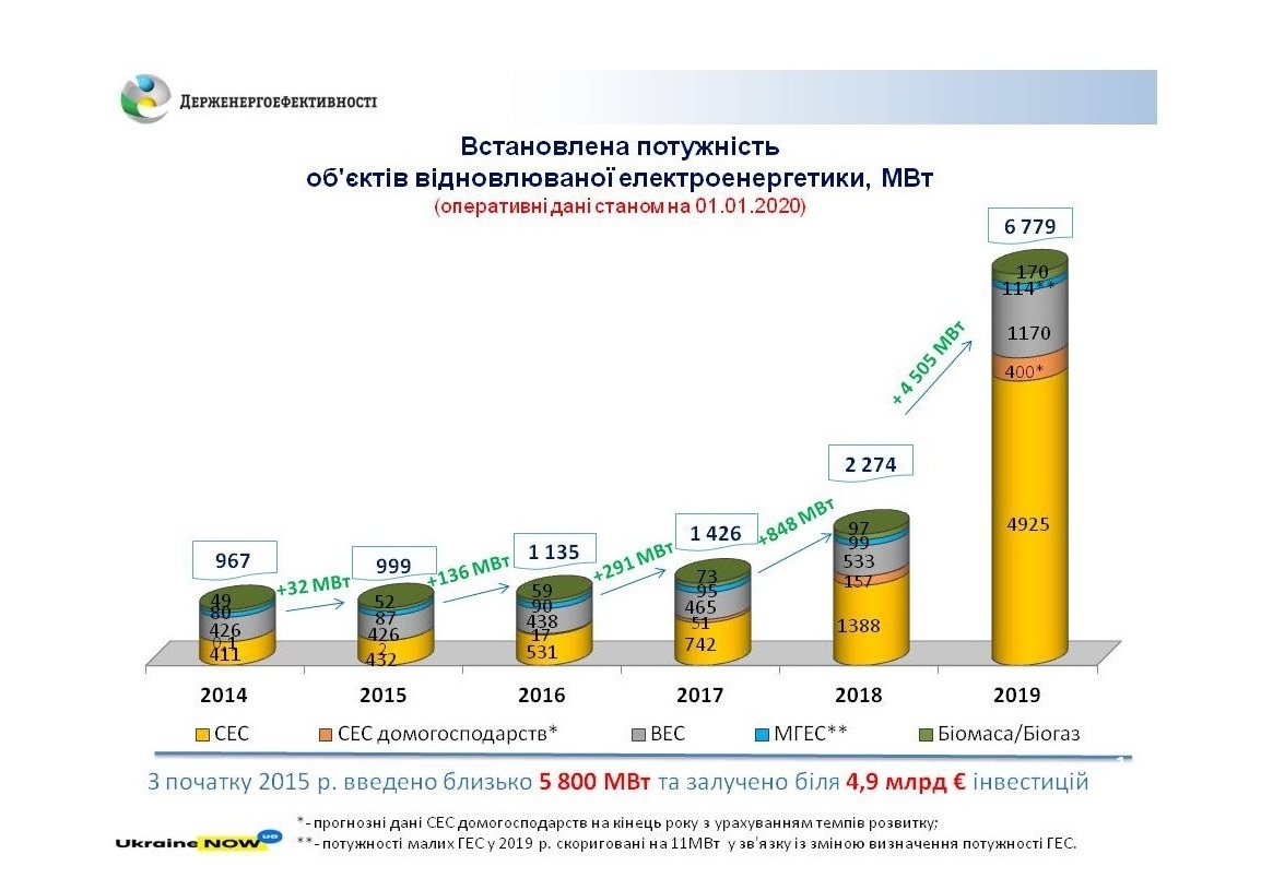«За останні 5 років загальна сума інвестицій у проекти "зеленої" електроенергетики склала майже 4,9 млрд євро!», - прокоментував директор Департаменту відновлюваних джерел енергії Держенергоефективності Юрій Шафаренко.
