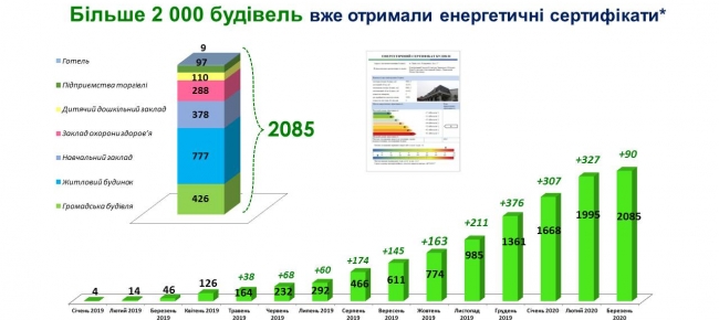 Загалом, станом на 4 березня 2020 р. сертифікацію пройшли більше 2 тис. будівель, а саме: