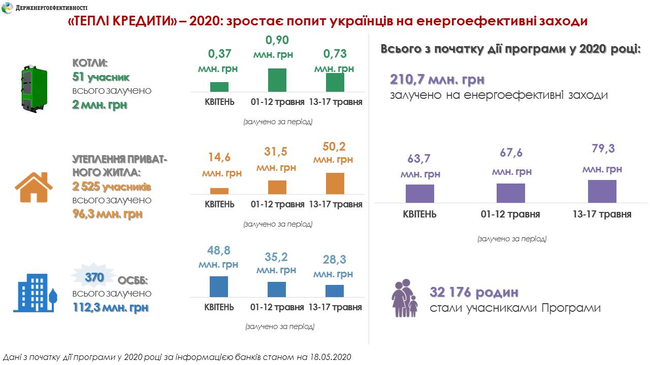 Важливо, що із початку дії програми у 2020 р. нею вже встигли скористатися 370 ОСББ, залучивши понад 110 млн грн кредитів на заходи з енергоефективності (встановлення ІТП, заміну вікон на енергоефективні, утеплення, модернізацію систем опалення тощо).