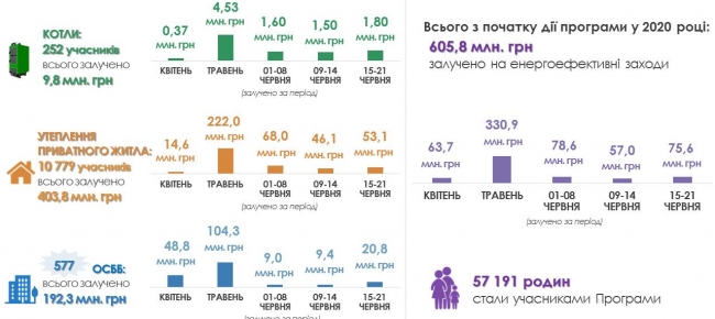 Загалом, із початку дії програми у 2020 р. вже понад 57 тисяч сімей стали її учасниками і залучили більше 600 млн грн «теплих кредитів».