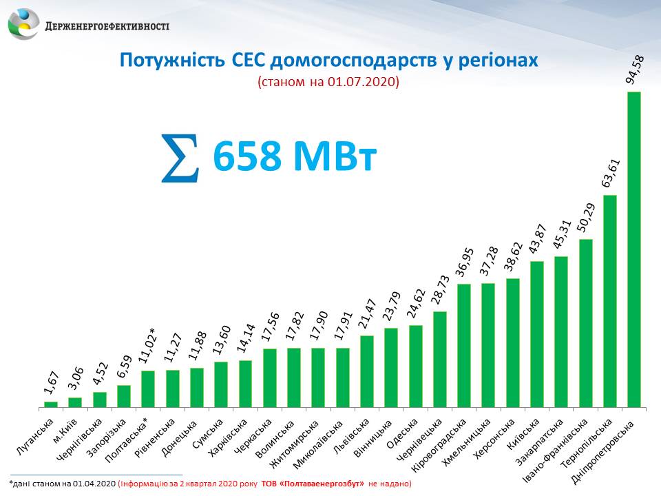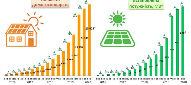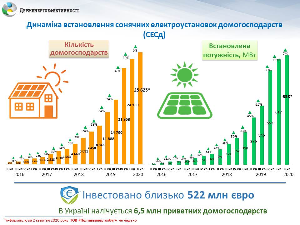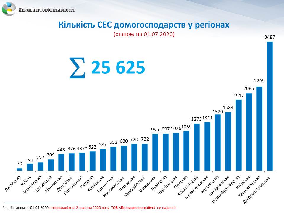 Станом на 1 липня 2020 р. вже понад 25600 домогосподарств в Україні  використовують «чисту» електроенергії, встановивши сонячні електростанції (СЕСд).