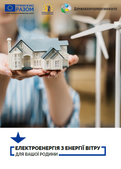 Переваги вітроустановок для домогосподарств презентує Держенергоефективності у брошурі «Електроенергія з енергії вітру для Вашої родини», розробленій за підтримки ЄС у рамках Проєкту ЄС Twinning «Розвиток відновлюваної енергетики України».