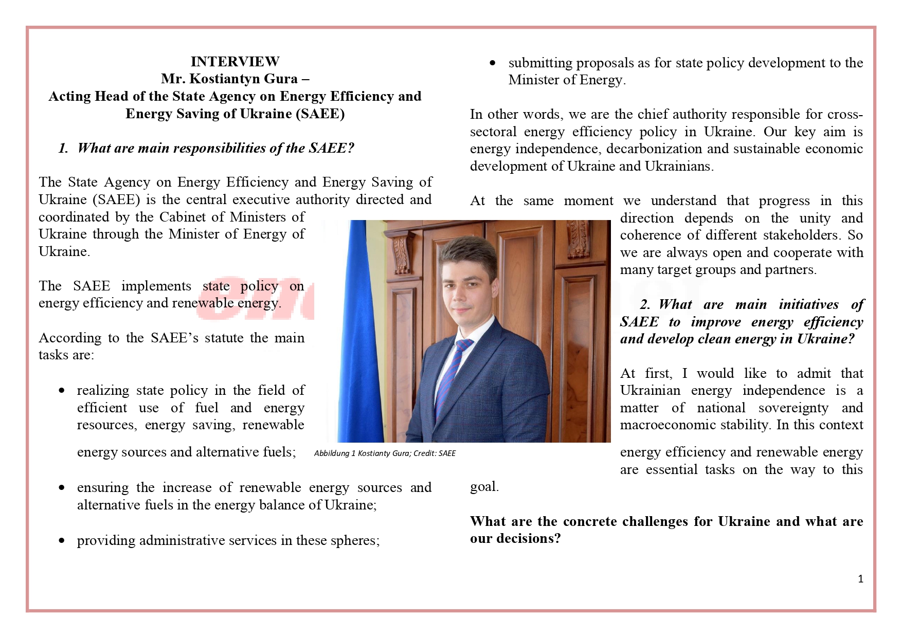Деталі про досвід та плани роботи Держенергоефективності дізнавайтеся в інтерв’ю Костянтина Гури, яке стало першим на порталі «Energy in Central and Eastern Europe»: https://www.enercee.net/fileadmin/enercee/Interviews/GURA_Interview_Draft_26_10_2020FINAL.pdf