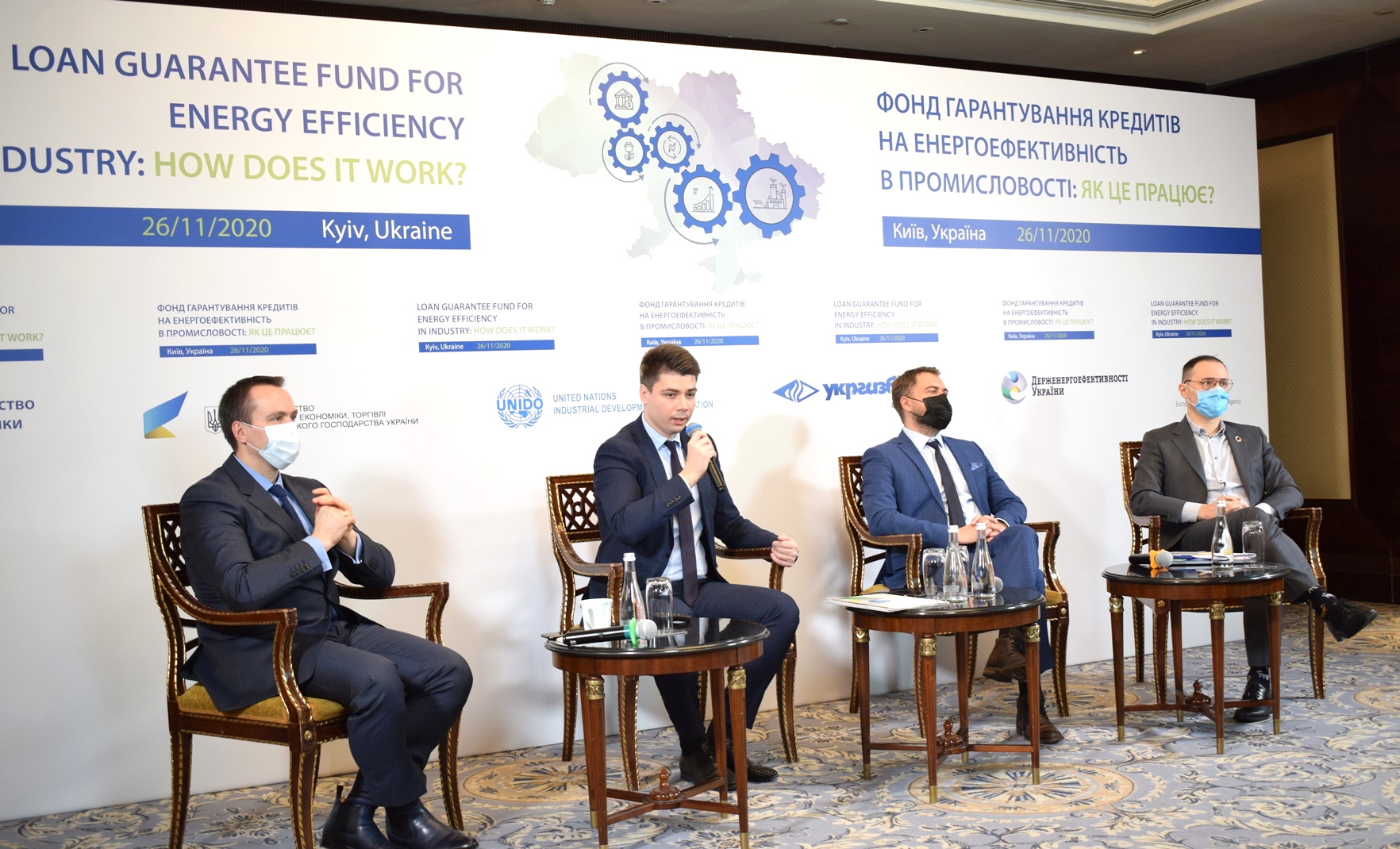 27 11 2020Презентація нового фінансового інструменту - Фонду гарантування кредитів на енергоефективність у промисловості – відбулася за ініціативи UNIDO та Укргазбанку і за участю Першого заступника Міністра енергетики Ольги Буславець, т.в.о. Голови Держенергоефективності Костянтина Гури, представників Мінекономіки та інших стейкхолдерів.