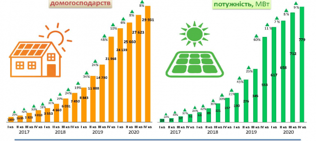21 01 2021Станом на кінець 2020 року в Україні налічується більше 29900 сімей, які встановили сонячні панелі. Їхня загальна потужність сягає 780 МВт.