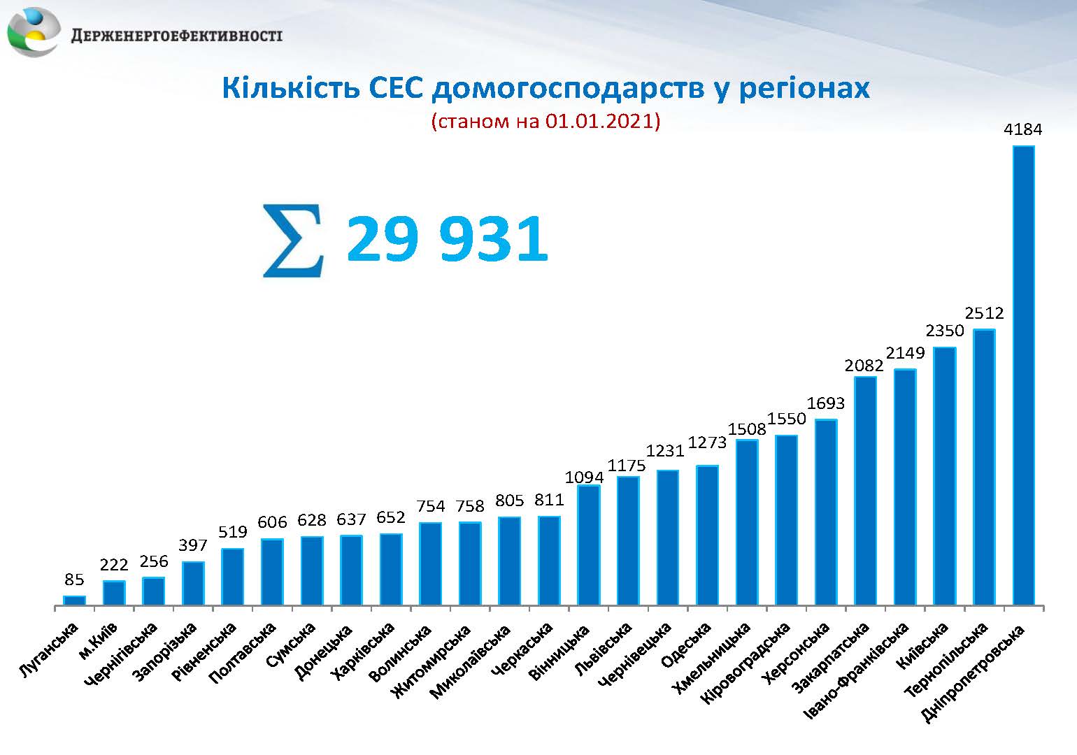 Оприлюднена Агентством статистика свідчить про зацікавленість українців до відновлюваних джерел енергії. Так, на кінець 2019 р. нараховувалося близько 22 тис. родин, які перейшли на СЕС. Два року тому, на кінець 2018 р., таких родин було у 4 рази менше – лише 7450 сімей.
