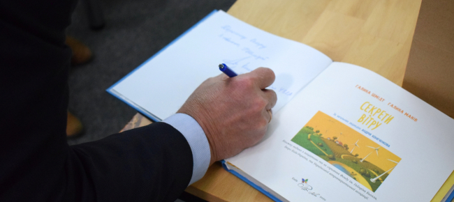 31 01 2021Заступник Голови Держенергоефективності Юрій Шафаренко взяв участь у презентації дитячої книжки з вітрової енергетики - “Секрети вітру”. Книжку ініційовано Українською вітроенергетичною асоціацією та видано видавництвом “Рідна мова” за підтримки Фонду ім. Г. Бьолля в Україні.