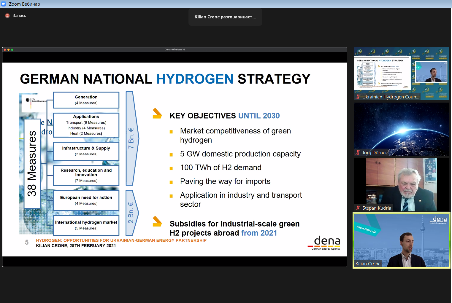 Масштабна онлайн-конференція об’єднала на одній дискусійній платформі представників депутатського корпусу, Віце-прем'єр-міністра з питань європейської та євроатлантичної інтеграції України, керівництво Міненерго, МЗС України, Держенергоефективності, представників Інституту відновлюваної енергетики НАН України, ЄБРР, «Hydrogen Europe», Німецького енергетичного агентства, іноземних компаній (Німеччини, Японії), вітчизняного бізнесу та асоціацій.