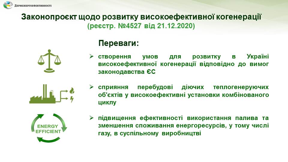 04 03 2021На засіданні Комітету ВРУ з питань інтеграції України до ЄС підтримано розроблений Держенергоефективності спільно з Міненерго проєкт Закону України щодо розвитку високоефективної когенерації (реєстр. № 4527 від 21.12.2020).