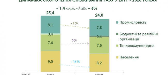 Водночас підприємства теплокомуненерго збільшили використання газу на 3% або на 200 млн м3 (з 7,4 млрд м3 за 2019 р. до 7,6 млрд м3 за 2020 рік).