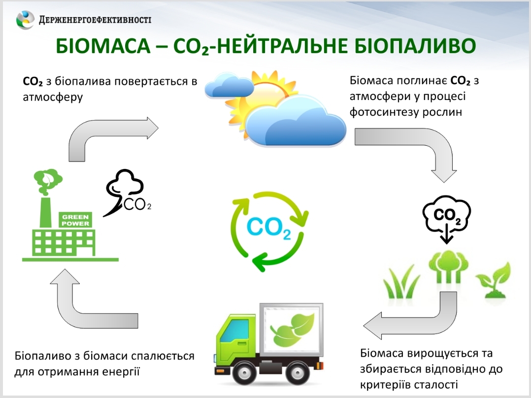 Ціль - застосувати в Україні загальноприйняті світові практики розвитку біоенергетики, відповідно до яких біопаливо вважається СО2-нейтральним. При його спалюванні двоокису вуглецю утворюється стільки, скільки було поглинуто рослинами під час росту (дивіться схему нижче).