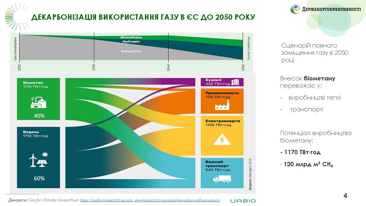 Тобто біометан вже сьогодні може використовуватися діючою розвиненою газотранспортною системою. Практично у всіх регіонах технічно можливо підключити установки з виробництва біометану до мереж.