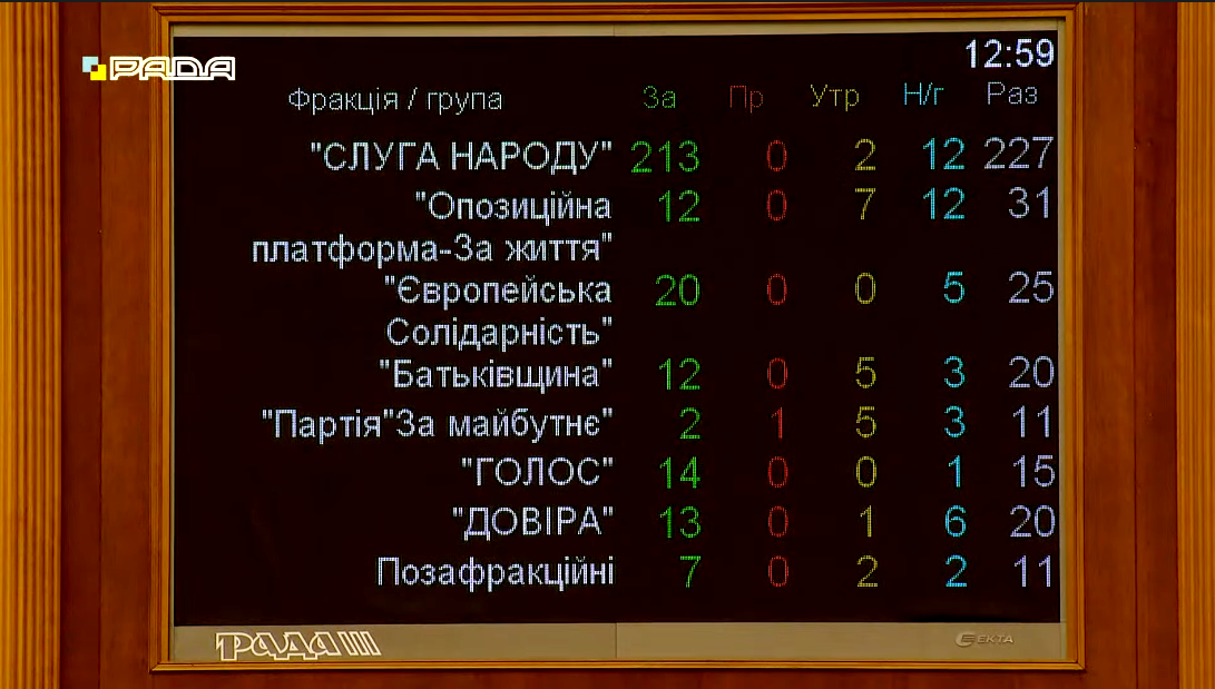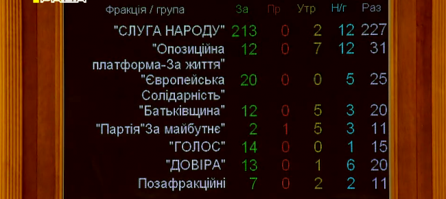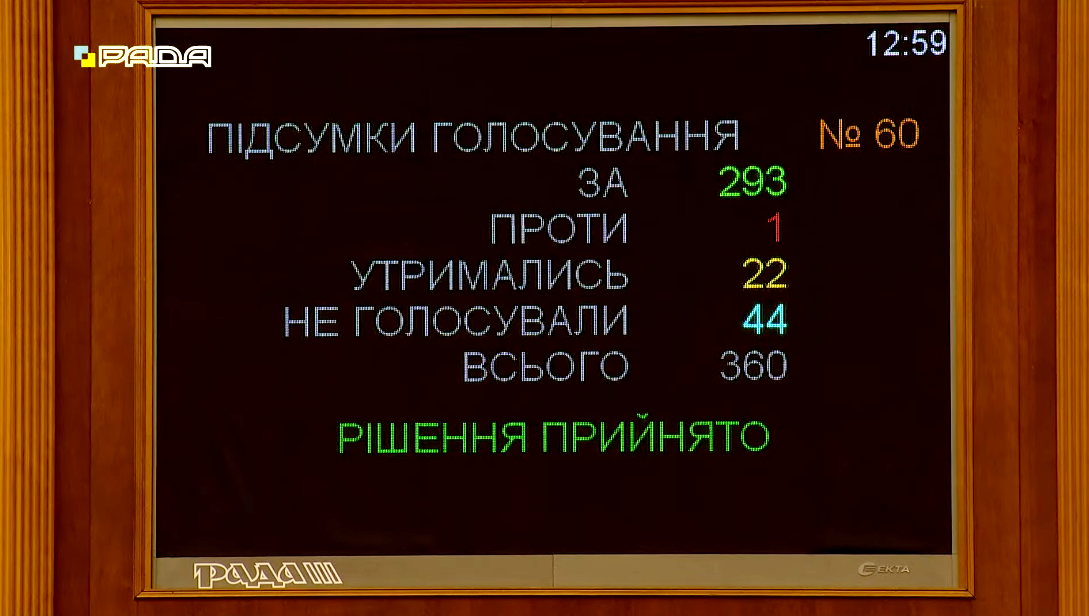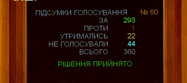 За це рішення проголосувало 293 народних депутати.