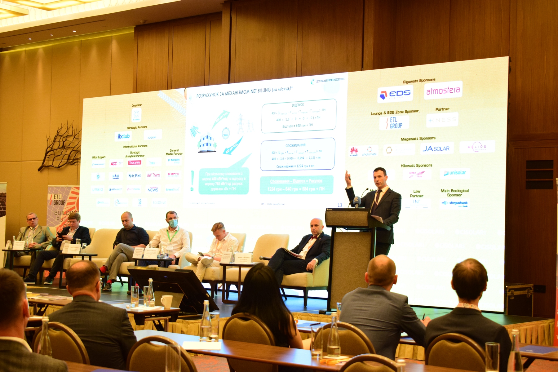 Під час виступу Юрій Шафаренко розповів про роботу Агентства із партнерами над розробкою нового механізму підтримки розвитку «зеленої» енергетики – Net Metering.