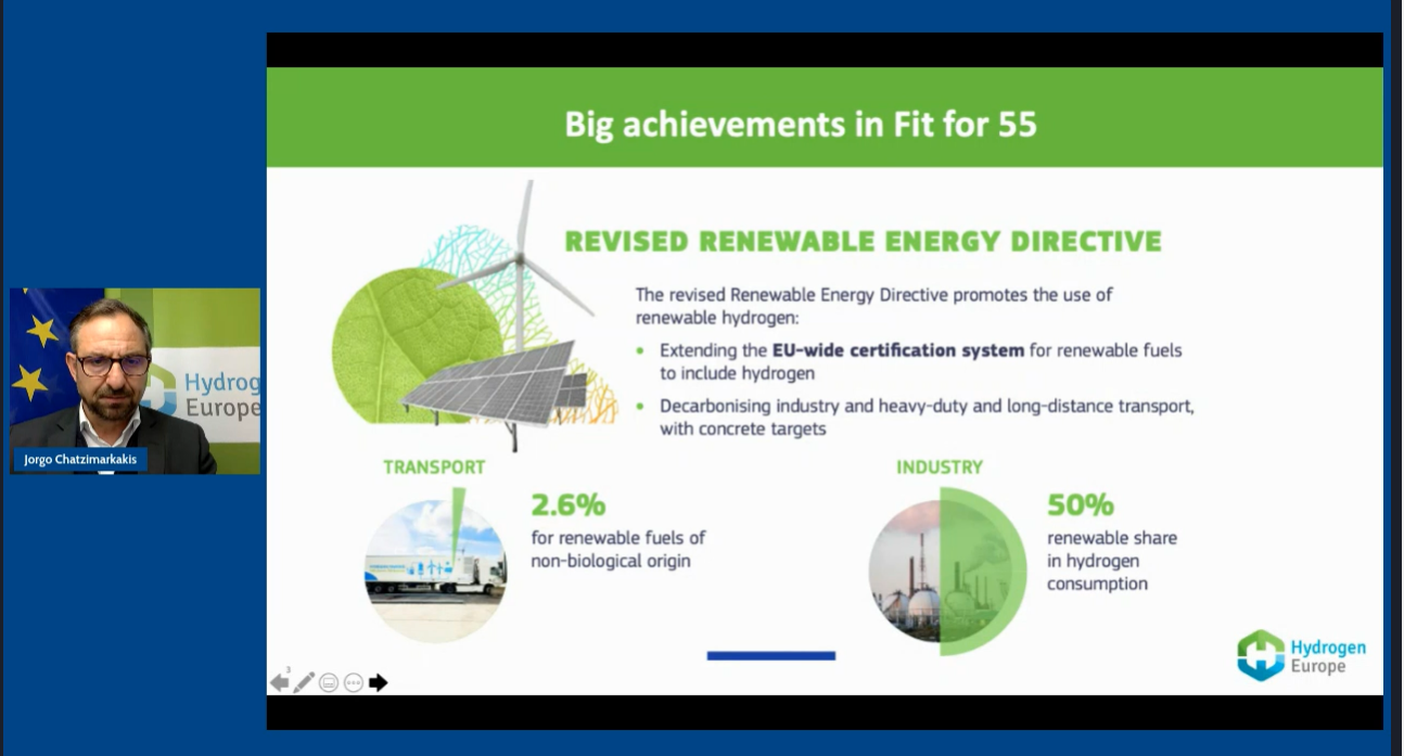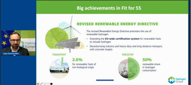 У свою чергу, генеральний секретар Hydrogen Europe Йорго Хадзімаркакіс звернув увагу на нещодавно схвалений ЄС пакет пропозицій щодо досягнення кліматичної нейтральності – «Fit for 55», в якому також визначаються необхідні кроки для розвитку сфери виробництва та використання водню у промисловості і транспорті.