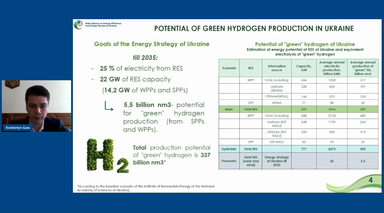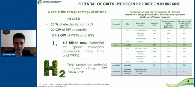 Костянтин Гура нагадав, що Україну визначено пріоритетним партнером ЄС щодо співпраці в напрямку виробництва та використання «зеленого» водню. Адже використовуючи значний потенціал відновлюваних джерел енергії та можливості своєї однієї з найбільших в Європі ГТС, Україна може стати ключовим експортером «зеленого» водню до країн ЄС.