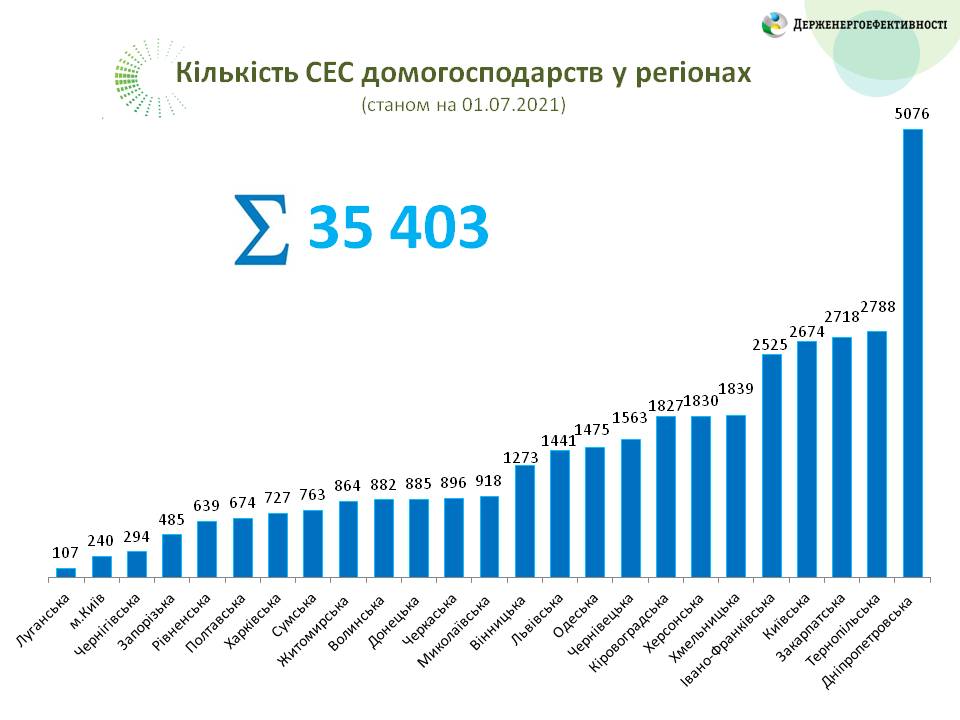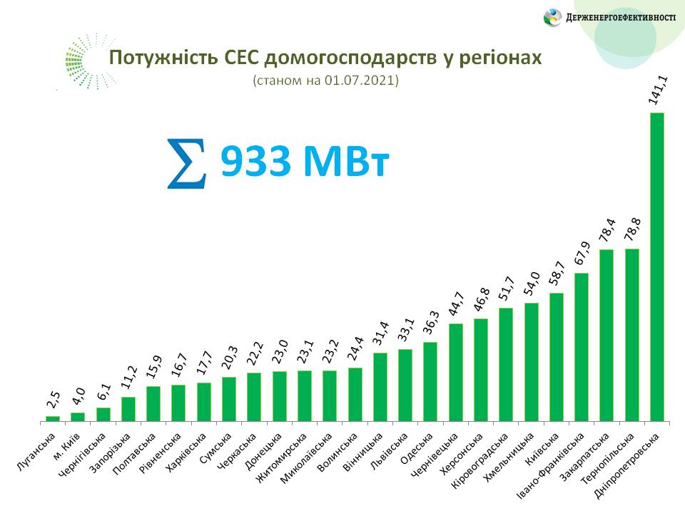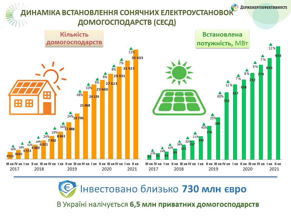 Таким чином, всього на сьогодні в Україні налічується понад 35 400 родин, які перейшли на електроенергію з енергії сонця. Загальна потужність таких СЕС – 933 МВт.