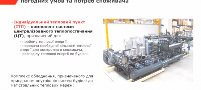 «ІТП - це важливий, але не самостійний об'єкт. Це - компонент комплексної модернізації систем теплопостачання. Їхню ефективність доведено та перевірено містами, які є ініціативними та організовують роботу із їх встановлення саме в проектах комплексної модернізації систем централізованого теплопостачання. Втім, такі проєкти не так масштабно впроваджуються, як того вимагає стан систем теплозабезпечення міст», - пояснив Голова Агентства.