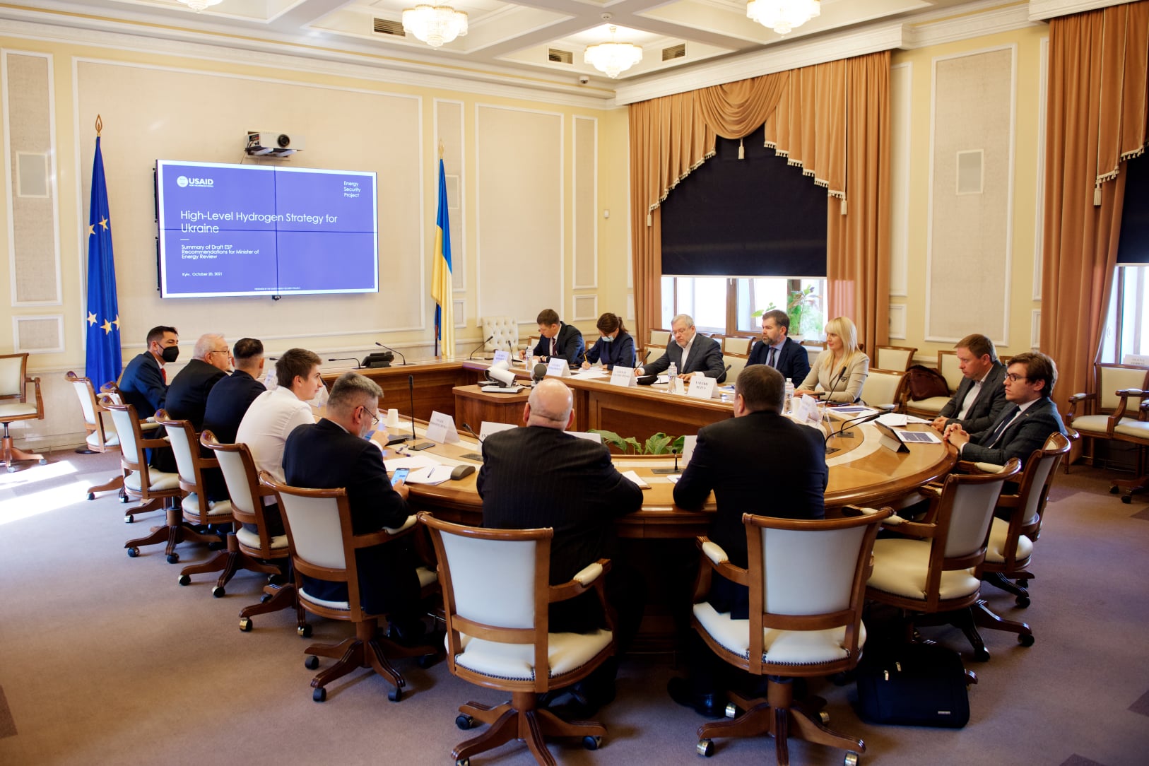 22 10 2021Під головуванням Міністра енергетики України Германа Галущенка відбулася зустріч представників Міненерго, Держенергоефективності із експертами Проєкту USAID «Енергетична безпека» щодо стратегії водневої енергетики в Україні.